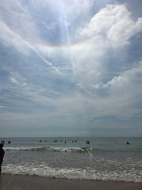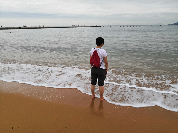 到青島,最不容錯過的就是陽光、沙灘、水中暢游啦!來到石老人海水浴場,放眼望去是蔚藍色的海洋,萬里的長空飄著潔白的云朵,遠處天空還出現了彩虹。