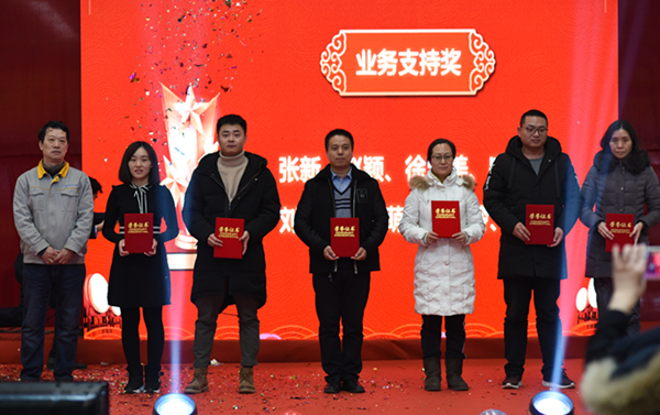 產(chǎn)業(yè)年會“頒獎典禮及迎新年會”在12日下午如期而至。焊機制作部首秀群舞《恭喜發(fā)財》。那紅火、熱烈、吉祥的氣氛立即嗨遍全場。時代各部門紛紛派出了自己的文藝明星登臺獻技。他們將各自的才藝及特長與公司文化相融合為時代同仁呈現(xiàn)了一場熱鬧、歡快的演出。隨著一浪高過一浪的微信抽獎活動,聯(lián)歡會現(xiàn)場達到沸點。一年一度的頒獎活動穿插在聯(lián)歡活動中逐一展開。一位位時代精英從領導手中接過令人艷羨的榮譽,這是時代對辛勤勞動者的肯定和贊譽。聯(lián)歡會最后一曲合唱《明天會更好》表達了全體時代人對2019年的憧憬和渴望。時代科技2018年年終總結會暨2019年工作計劃會在響徹四方的嘹亮歌聲中落下帷幕。