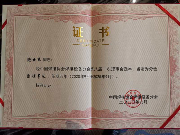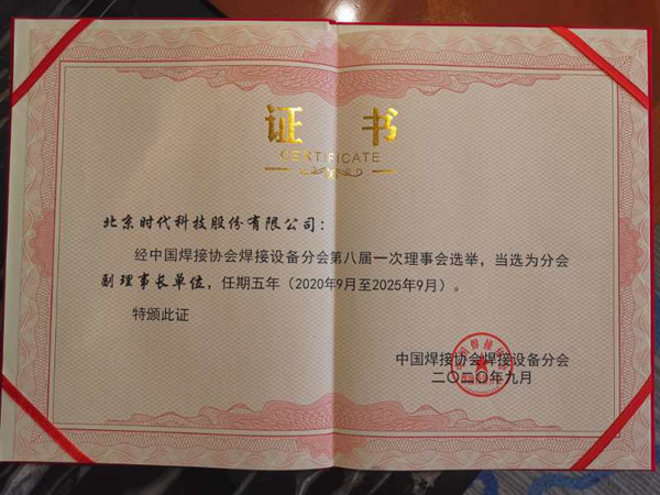 時代公司當選中國焊接協會焊接設備分會副理事長單位