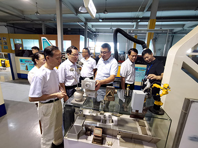 儀式活動開始前,協會各位領導在羅總的陪同下參觀了濟南焊接工業園,同時現場考察和了解了機器人焊接培訓基地的設備狀況、人員狀況和培訓活動開展情況。協會領導針對基地的管理和運轉現狀予以肯定,同時提出了不少寶貴的建議。