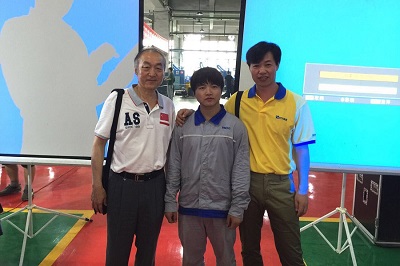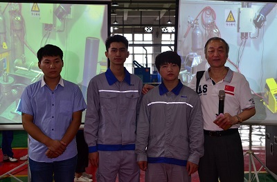 圖4:時(shí)代首席高級(jí)技師(右)與焊接專家(左)、世界冠軍曾正超(中)